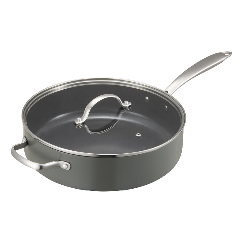 Rymlig traktörpanna 4,7 liter Ø28 cm med KFFC keramisk beläggning (generation 8) som ger riktigt bra non-stick-effekt utan PFAS. Tillverkad i tjock aluminium med hårdanodiserad utsida och rostfri botten - passar alla spisar inklusive induktion. Med medföljande glaslock är den perfekt för både vardagsrätter och bjudmiddagar.