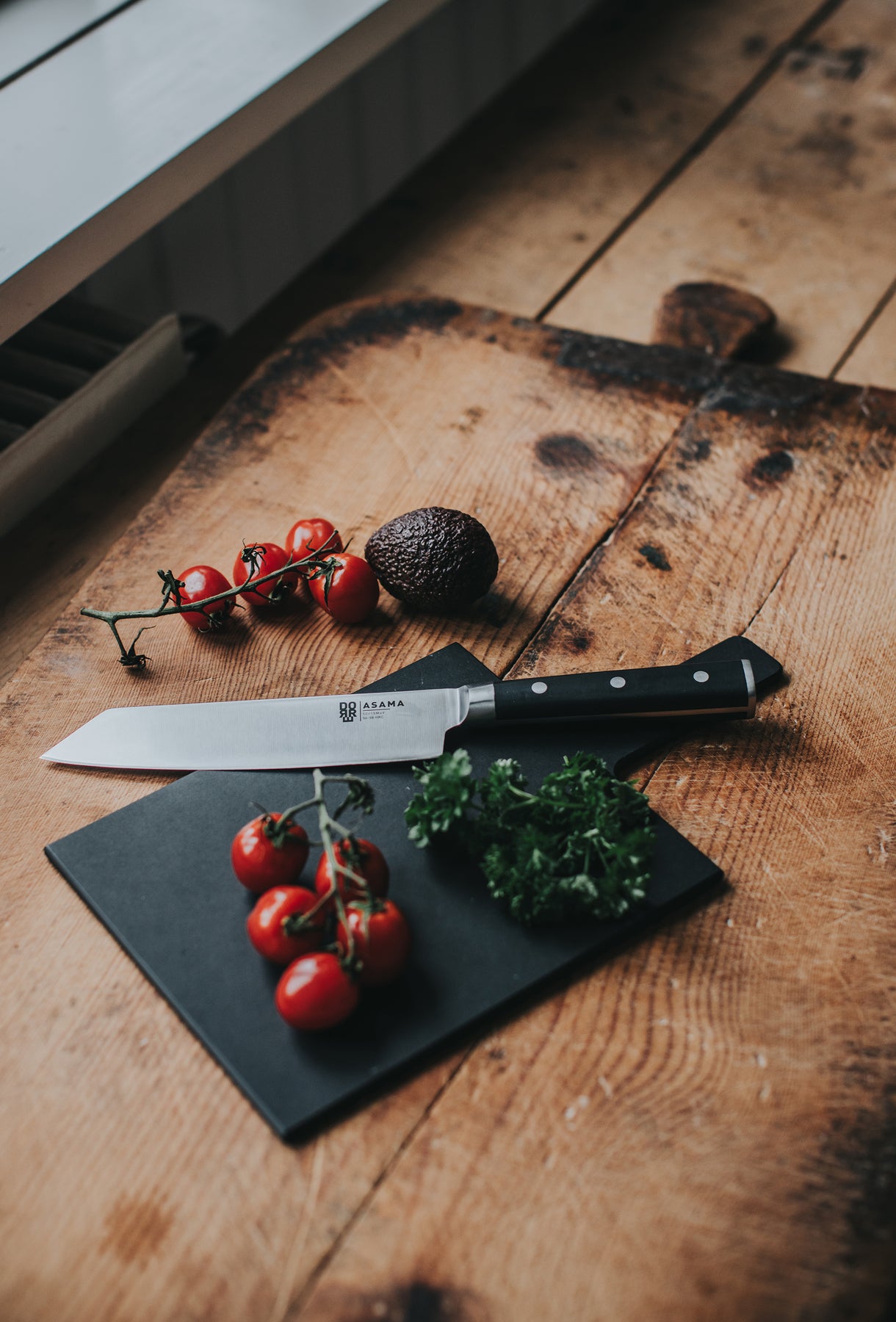 Asama Kiritsukekniv i 5Cr15MoV-stål ger en skarp, mångsidig egg för både grönsaker och fisk. Med 19 cm blad och svart handtag får du bra balans och kontroll. En professionellt inspirerad kniv som kombinerar japansk form med Dorres funktionella design för precisionsarbete i köket.