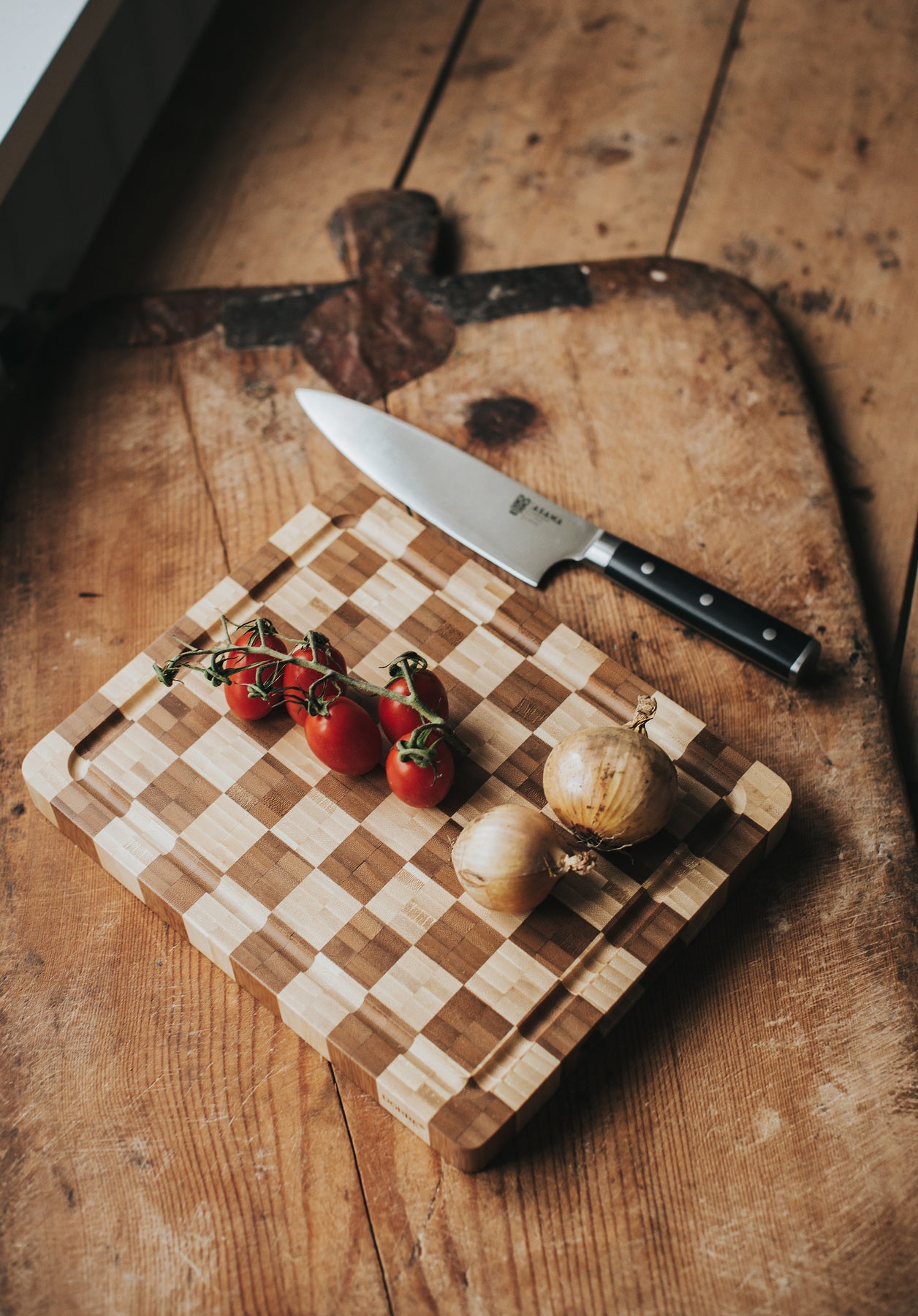 Kombo skärbräda i bambu erbjuder en stabil, hållbar arbetsyta som är skonsam mot knivar. Med måtten 30 × 24 × 3 cm är den lagom stor för vardagliga köksmoment. Den massiva konstruktionen ger trygghet vid skärning, samtidigt som bambuns naturliga struktur ger ett varmt uttryck.