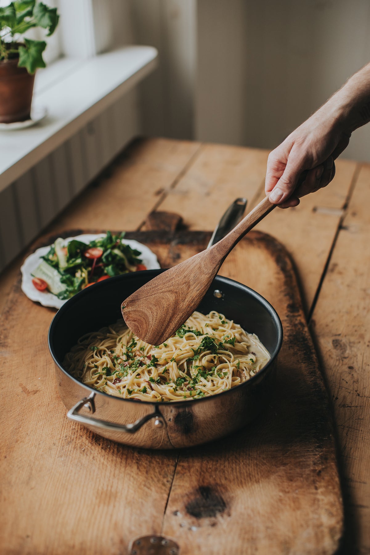 Trivence sauterpande i 3 mm tri-ply giver hurtig, jævn varmefordeling og en stabil konstruktion. Den PFAS-fri og avancerede KFCC Gen 8-keramiske belægning giver en fremragende non-stick-effekt og holdbarhed. Med glaslåg og 28 cm diameter bliver den et alsidigt premiumredskab til sautering, stegning og skånsom tilberedning.