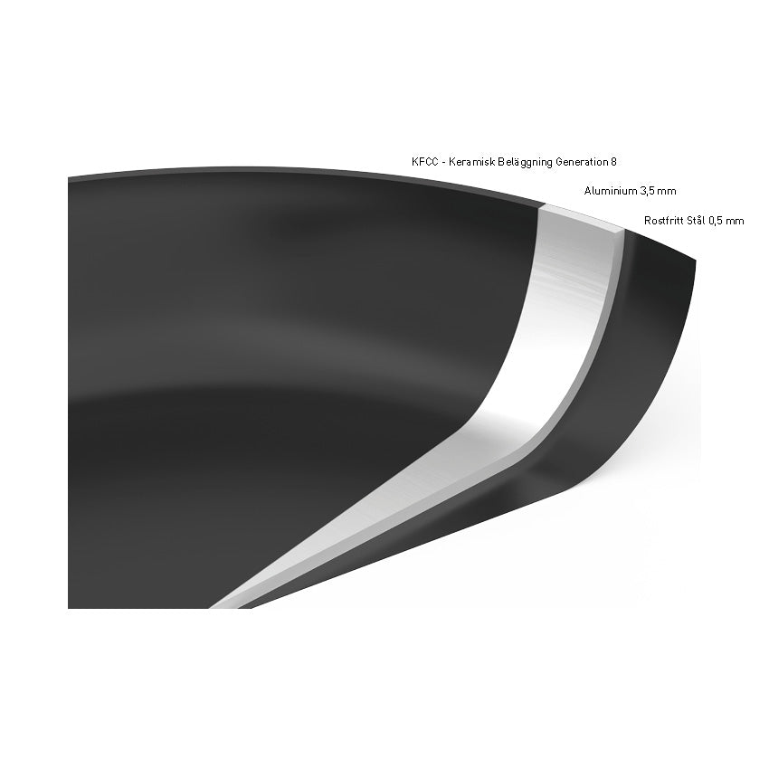 | Øvrigt: | Denne pande er udstyret med KFCC’s nyeste keramiske non-stick-belægning – generation 8, som tilbyder op til 30 % bedre slipningsevne og markant forbedret slidstyrke sammenlignet med forgængeren G7. Den avancerede 2-lags belægning kombinerer holdbarhed, ridsefasthed og nem rengøring for at give længere levetid og en endnu bedre madlavningsoplevelse |