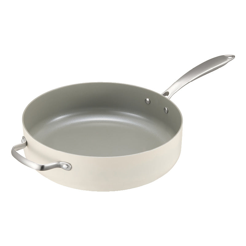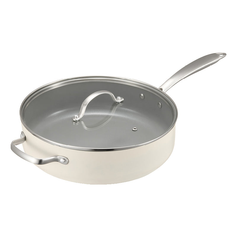 Rymlig traktörpanna 4,7 liter Ø28 cm med KFFC keramisk beläggning (generation 8) som ger riktigt bra non-stick-effekt utan PFAS. Tillverkad i tjock aluminium med hårdanodiserad utsida och rostfri botten - passar alla spisar inklusive induktion. Med medföljande glaslock är den perfekt för både vardagsrätter och bjudmiddagar.